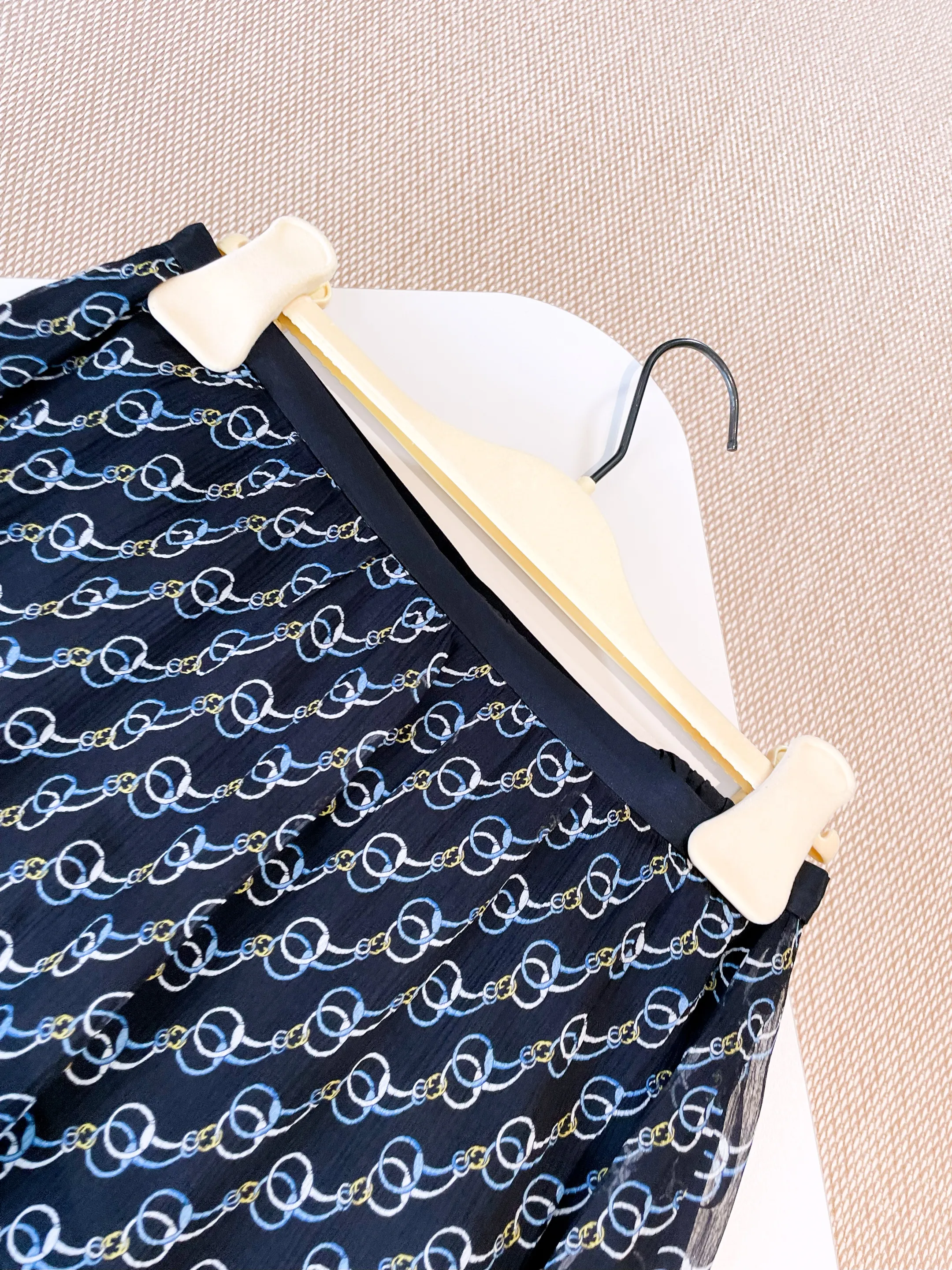 Эта летняя юбка с разрезом, выполненная из струящегося шелка с ярким принтом - идеальное воплощение летней свободы и непринужденной элегантности. Игривый разрез добавляет дерзости, а легкий, полосатый шелк мягко обволакивает фигуру. Завершающий штрих - пряжка G, деликатно подчеркивающая талию. В сочетании с воздушной блузой она создаст женственный и романтичный образ.
