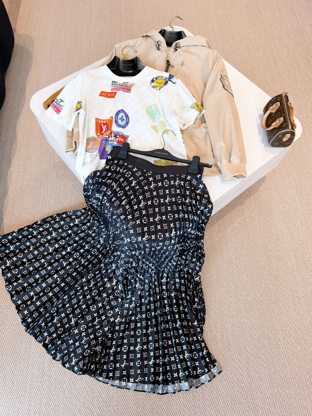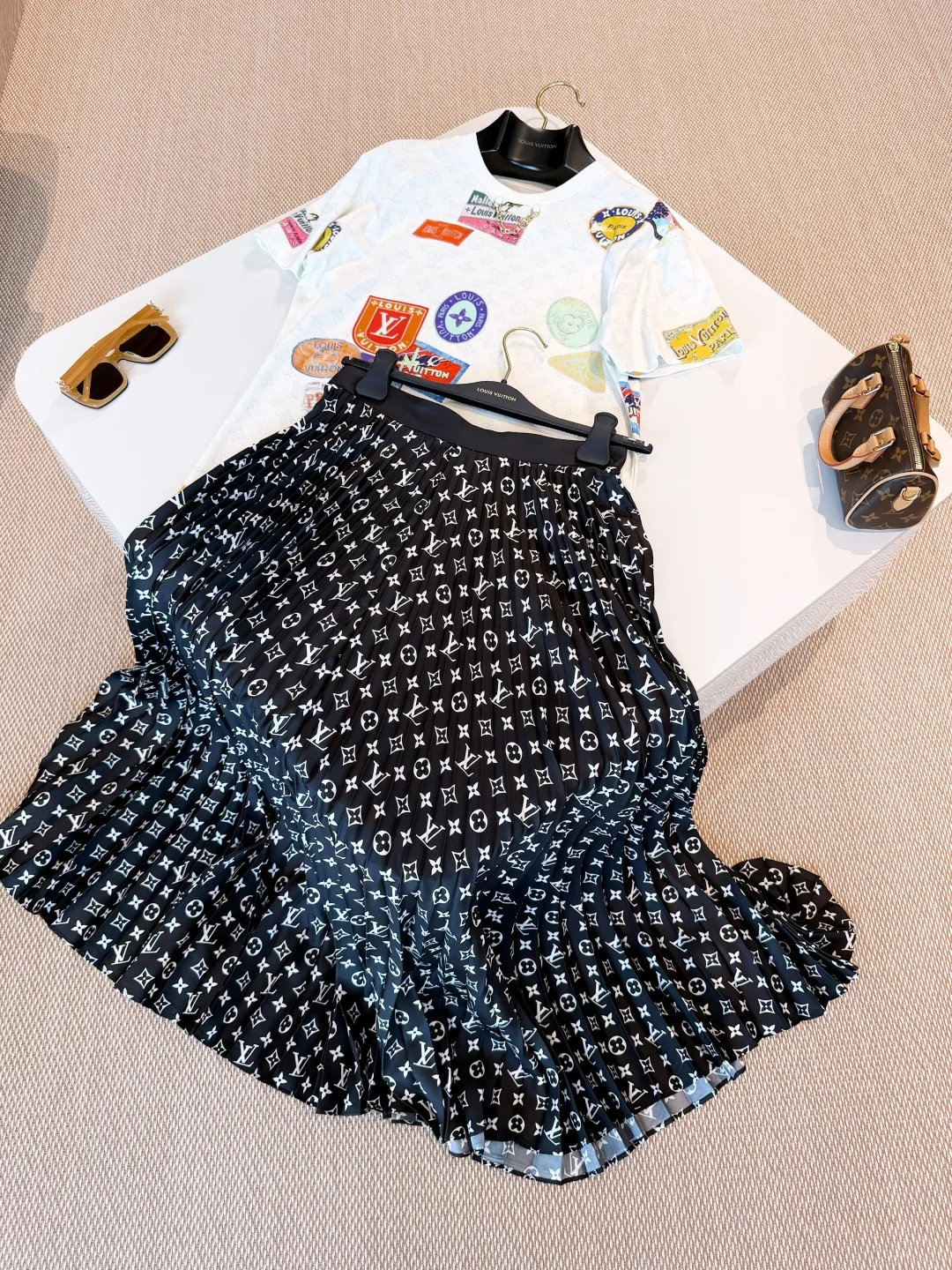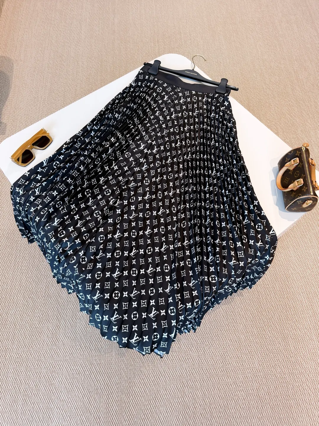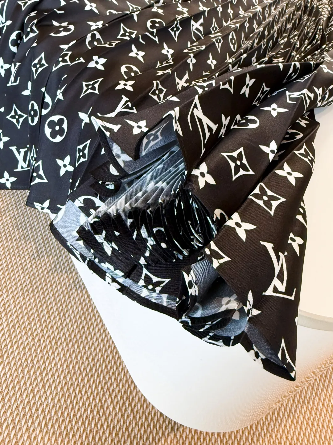 Элегантная женская юбка Louis Vuitton из шёлка поражает своим изысканным стилем и вниманием к деталям. Модель выполнена из лёгкого, воздушного шёлка глубокого чёрного цвета и украшена культовым монограммным принтом Louis Vuitton по всей длине изделия.