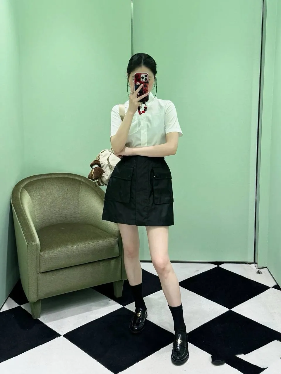 Эта юбка Prada 2025 — воплощение современного подхода к моде. Выполненная из импортной переработанной нейлоновой ткани, она не только легкая и дышащая, но и подчеркивает заботу о планете. Эластичный пояс обеспечивает комфортную посадку и свободу движений на протяжении всего дня. Практичность и стиль объединены в этой юбке благодаря вместительным накладным карманам по бокам. Они добавляют образу нотку уличного стиля и функциональности. Безупречный крой подчеркивает лаконичный силуэт, делая эту юбку по-настоящему универсальной.