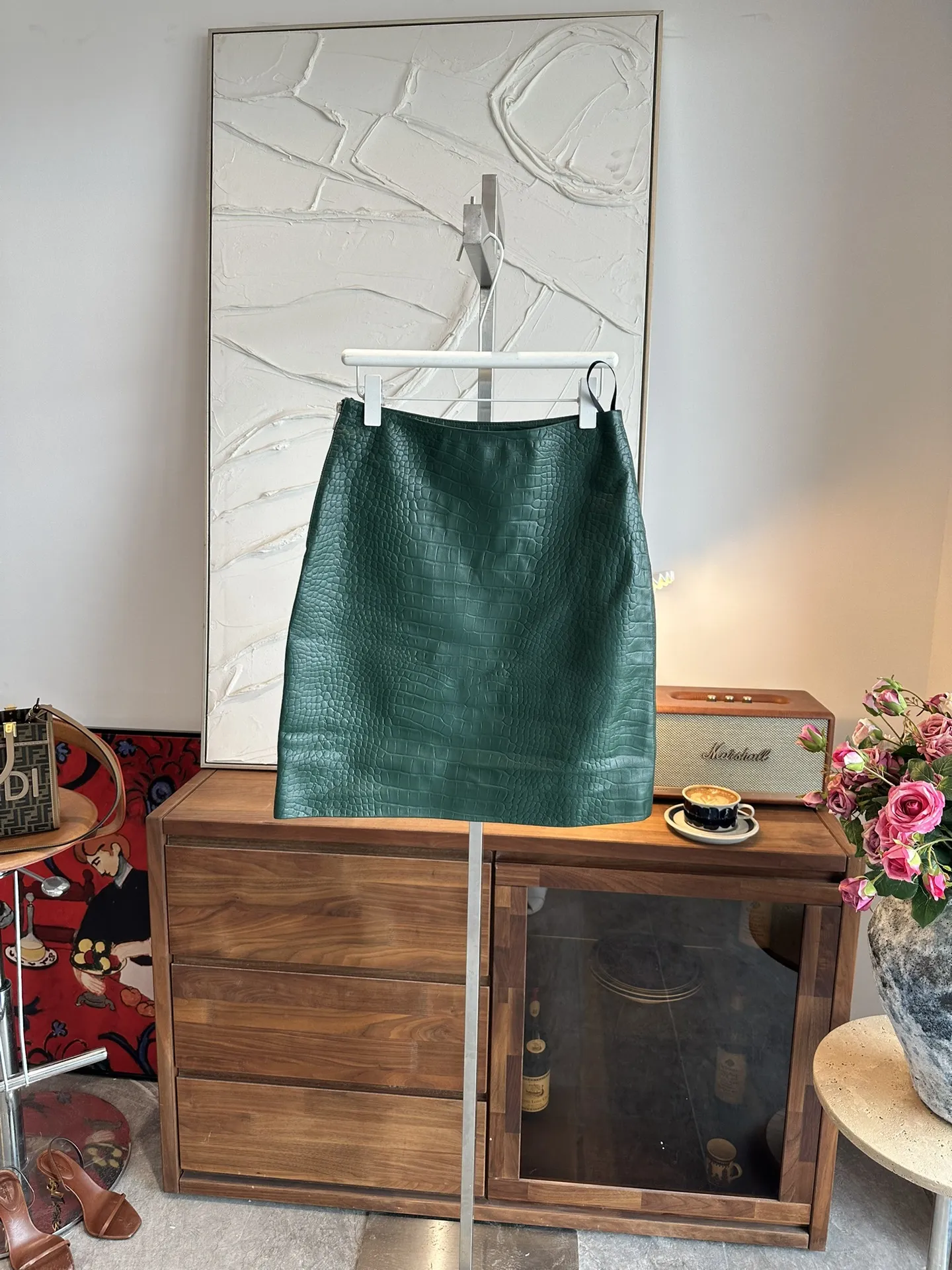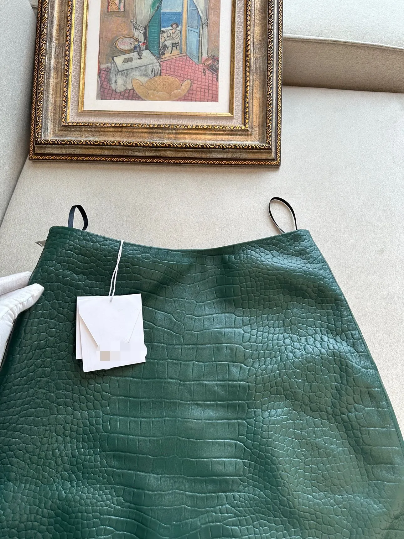 Женская кожаная юбка от The Row воплощает в себе элегантность и утонченность, характерные для бренда. Текстура кожи с эффектом крокодила придает юбке уникальный и стильный вид, идеально подходящий для создания как повседневных, так и вечерних нарядов.