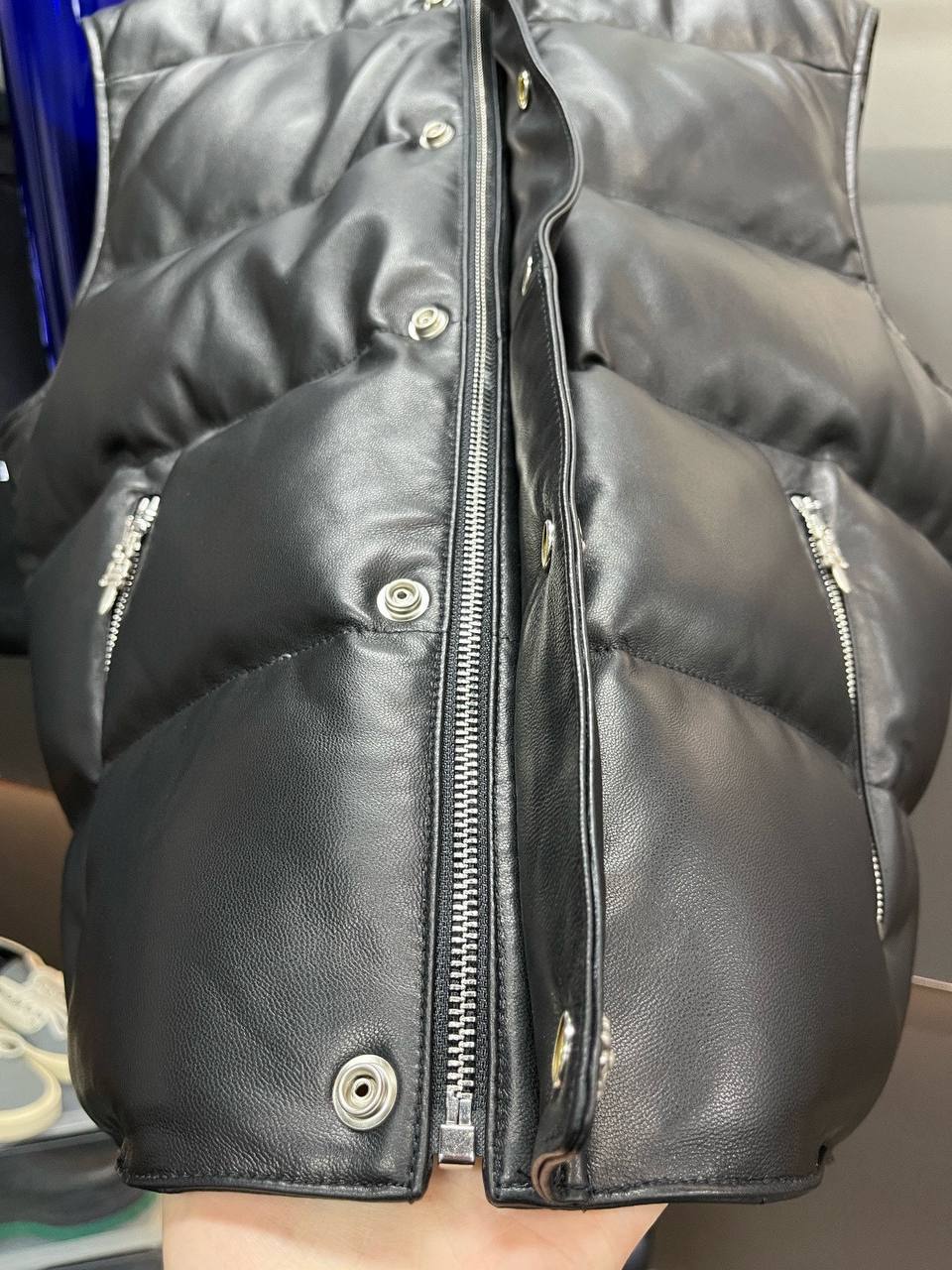Элегантный мужской жилет от CHROME HEARTS в лаконичном чёрном исполнении — идеальный выбор для холодного сезона и многослойных образов. Современный puffer‑силуэт в сочетании с премиальной кожей придаёт изделию одновременно брутальность и утончённость.