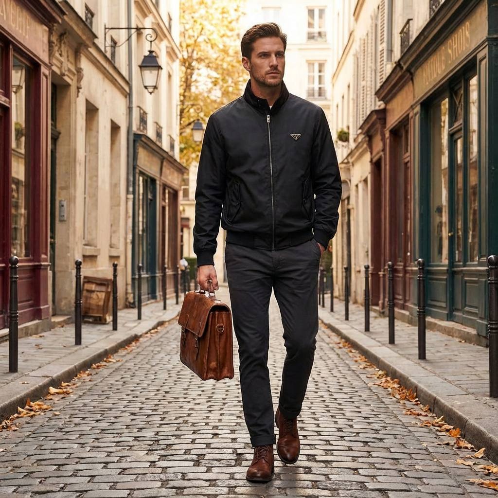 Лаконичная мужская ветровка PRADA в классическом черном цвете — идеальное сочетание сдержанной элегантности и функциональности. Выполнена из гладкой технической ткани с лёгким блеском, она защищает от ветра и лёгкого дождя, оставаясь при этом лёгкой и удобной в носке.