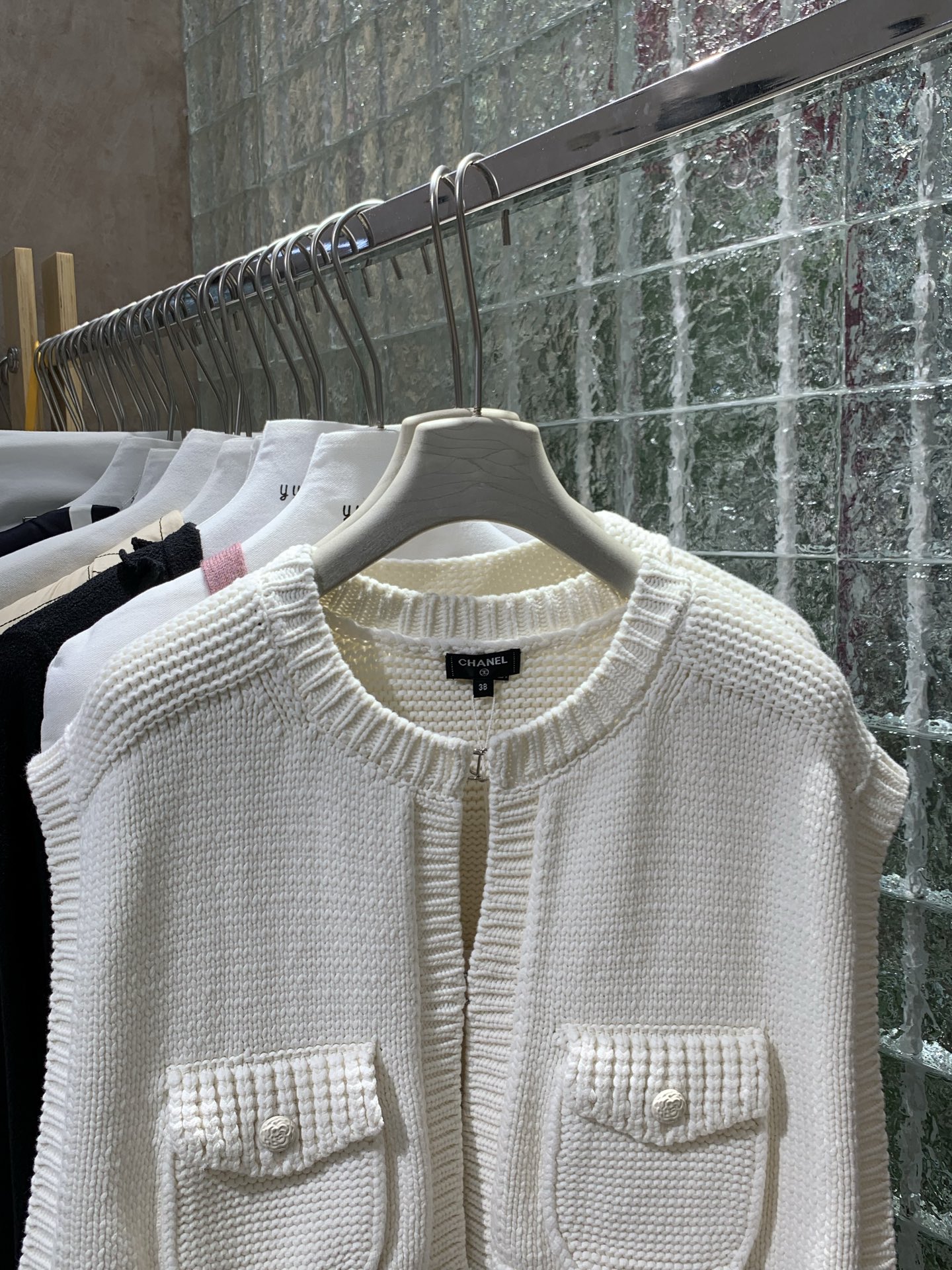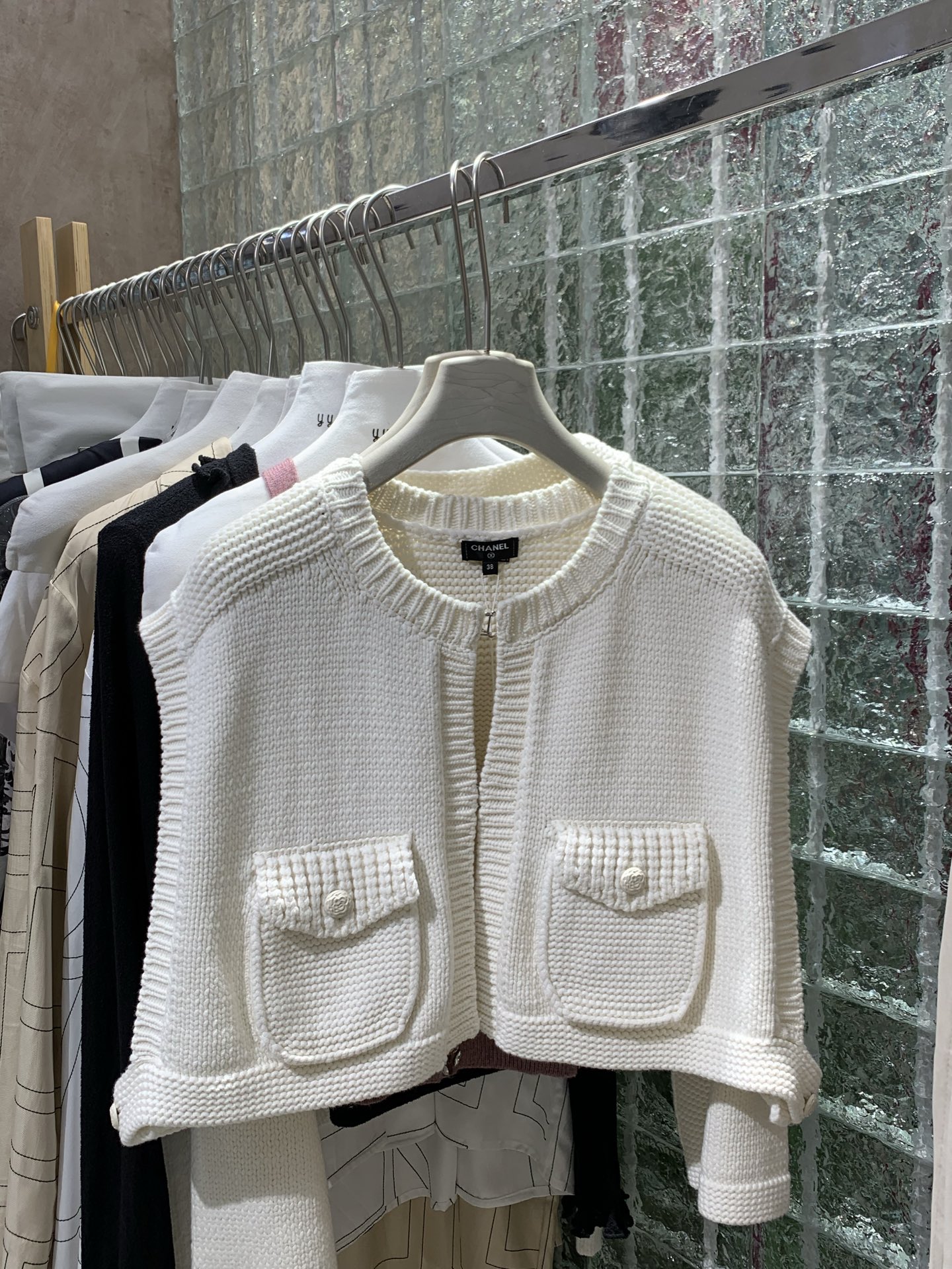 Жилет Chanel, выполненный из хлопка и полиамида, — стильное и элегантное дополнение гардероба. Модель выполнена в молочно-белом оттенке, имеет свободный крой и укороченную длину. Отличительной чертой служит фактурная вязка и два накладных кармана с фирменными пуговицами спереди. Круглый вырез и отсутствие застёжек подчеркивают минимализм и утонченность изделия. Жилет прекрасно сочетается как с классическими рубашками, так и с легкими топами, добавляя образу нотку легендарного французского шика.