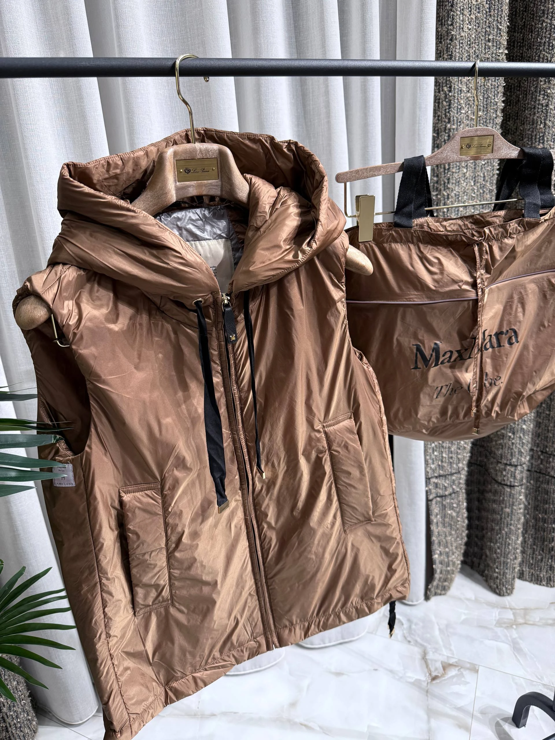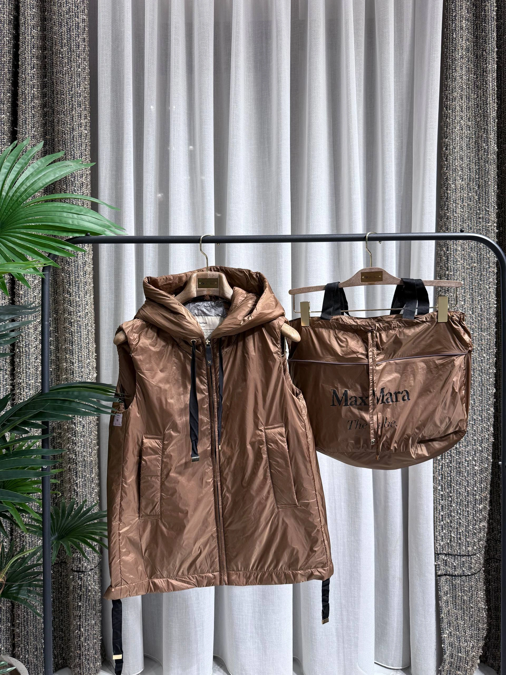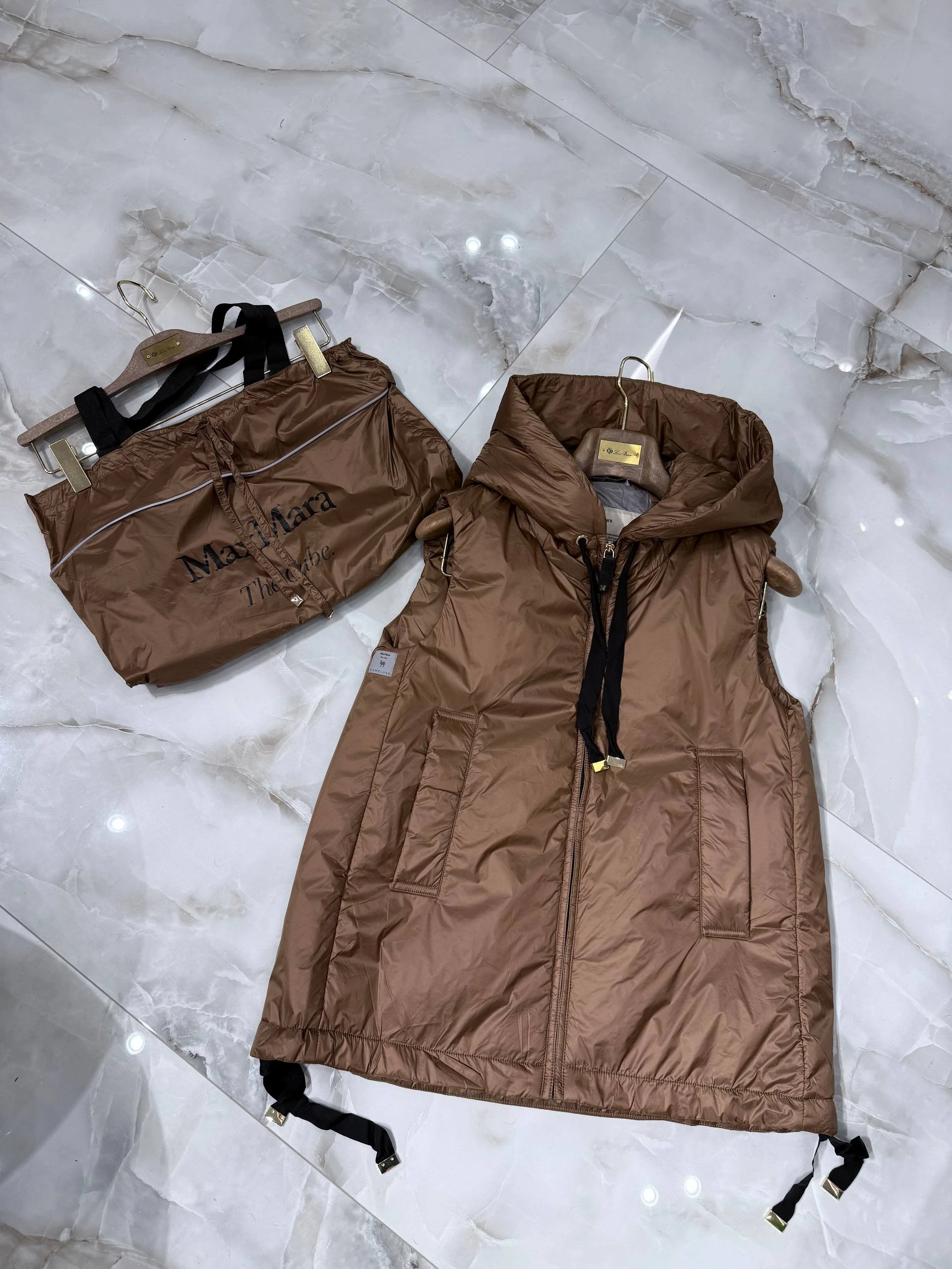 Дополнительно к жилету идет стильная сумка-чехол с логотипом Max Mara, которая идеально подходит для хранения и транспортировки изделия.